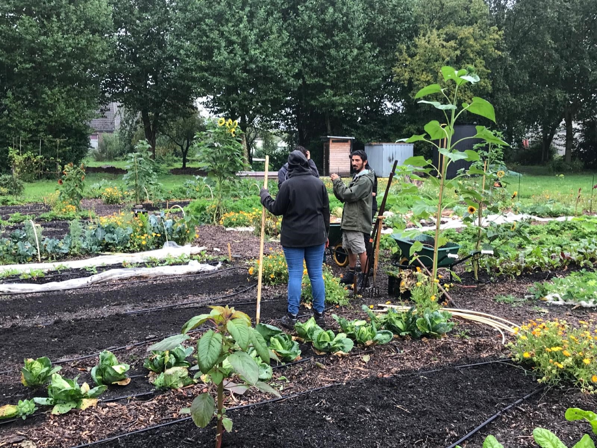 Zo hebben de studenten van instructeur Jeroen Peters al uitleg gehad van de tuinder Sebastián Vargas van Bodemliefde. De les ging over het inzaaien en de functie en het gebruik van groenbemesters (zie foto) en ook hadden ze spontaan een lesje imkeren en natuurlijk werd de raathoning geproefd.